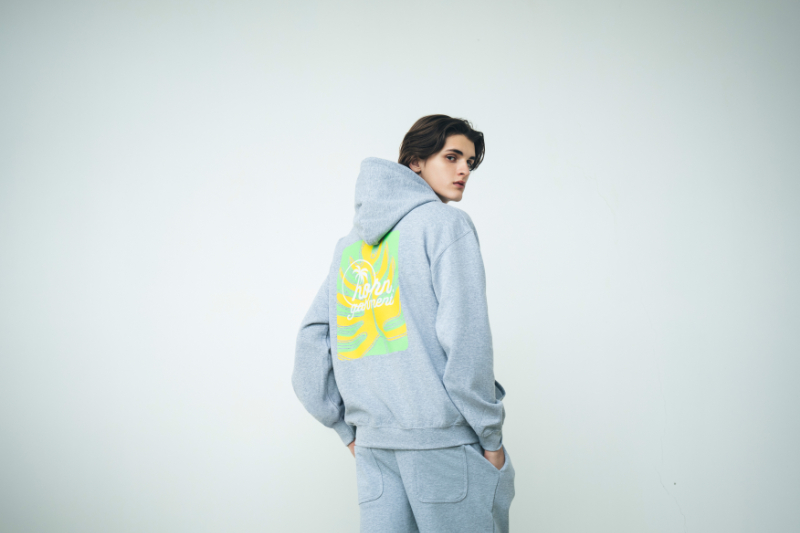 「HORN GARMENT(ホーンガーメント)」は、2006年にカリフォルニアのニューポートビーチで誕生したブランドで、ブランド名の由来は、「幸運を呼ぶ」とされる「角笛(ホルン)」にちなんでおり、単に衣服(Garment)を提供するだけでなく、手に取る人や着用する人に幸運や喜びを届けたいという願いが込められている。