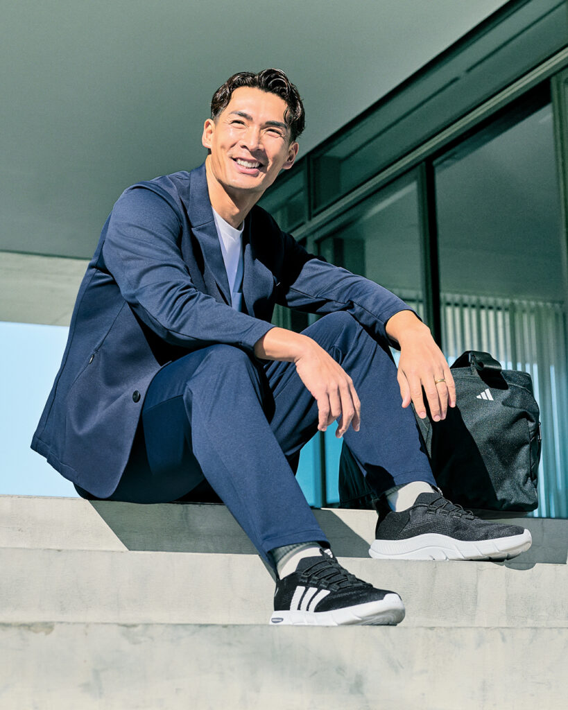 「足入れがとにかく楽。それが嬉しいですね。柔らかいけれど厚底すぎないので、重心が安定して、長時間立っていても疲れないのが指導者には嬉しい。革靴のような締め付け感がなく、ソフトな履き心地なので、出張が多いビジネスマンの足にも優しいと思います」