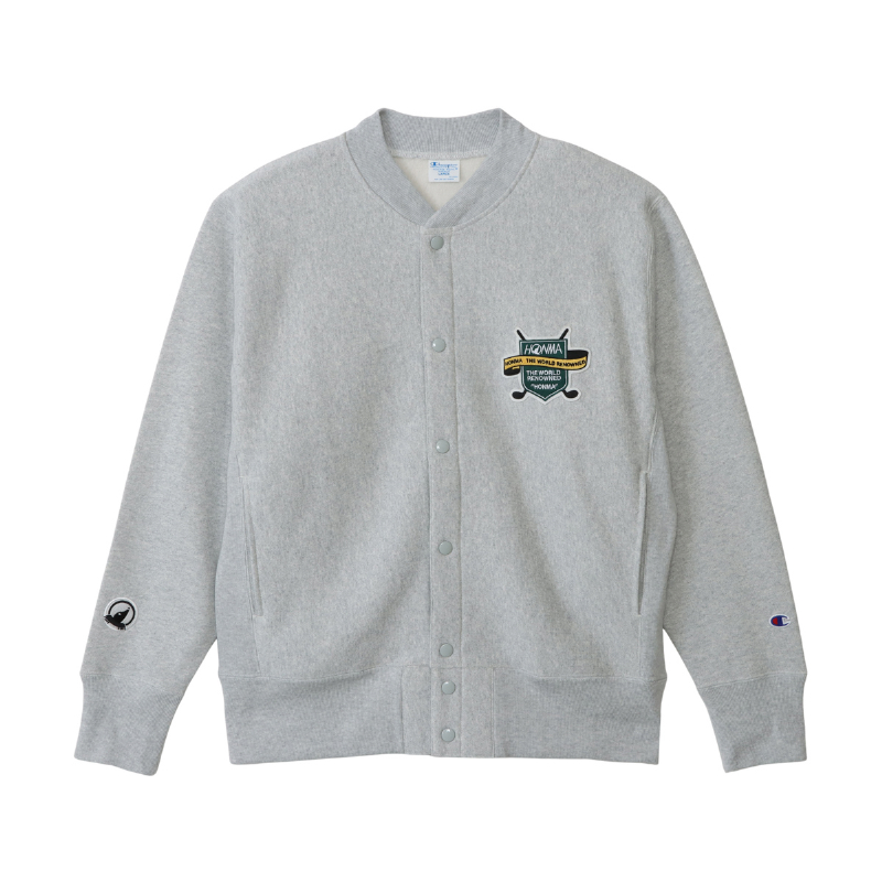展開アイテムは4型。クラシックな佇まいのクルーネックスウェット「C8-C044 CREW NECK SWEATSHIRT」(18,700円、税込)をはじめ、スナップジャケット、ジップフーディ、スウェットパンツまで、いずれもオックスフォードグレー、ブラック、ネイビーなど落ち着いたカラーで展開される。どのアイテムも、ChampionとHONMAのロゴがさりげなく共存するデザインとなっており、両ブランドのアイデンティティが共鳴する仕上がりだ。