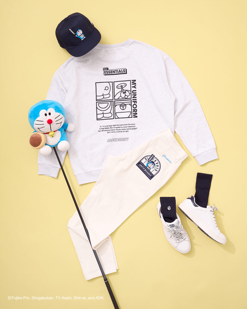 今回の『ドラえもん』コレクションは、「MY UNIFORM」をキーワードに、キャラクターのアイコンモチーフやシルエットを新たな切り口でデザイン。 “自分らしさ=UNIFORM”を表現した、遊び心あふれるラインナップが登場する。