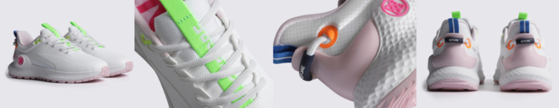 本作は、ブランドを代表する「MG4+」と「MG4×2」両シリーズの特長を掛け合わせ、快適性と軽量性をさらに進化させた一足。ゴルフシーンはもちろん、街やリゾートでも自然に履けるデザインを追求している。
