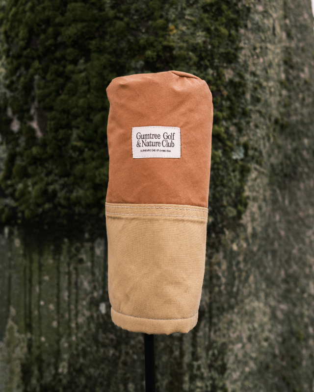 限定コレクションには、1950年代のビンテージ・キャンバステントをアップサイクルしたヘッドカバーとシューズバッグがラインアップされる。素材に残るシミや風合いなど、長年使い込まれた痕跡もデザインの一部として生かされた一点物だ。真ちゅう製のDリングやキャンプロープがアクセントとしてあしらわれている。