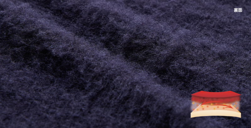 「ヒートラブ」は、セーターの約3倍もの保温力を持ちながら、重ね着せずに冬を快適に過ごせるのが特徴だ。空気を多層に抱え込む極厚構造が体温を逃さず、外側の吸湿発熱素材「サーモギアⓇ」が余分な湿度をコントロール。断熱保温・吸湿発熱・摩擦発熱のトリプル機能で、寒さの中でも快適な温度バランスを保つ。着膨れしにくい設計のため、スタイルを損なうことなく暖かさをキープできる。