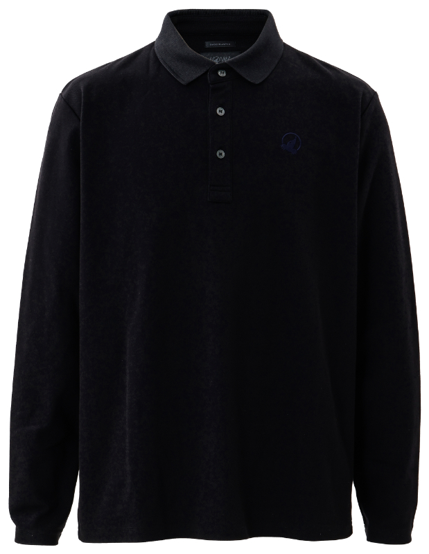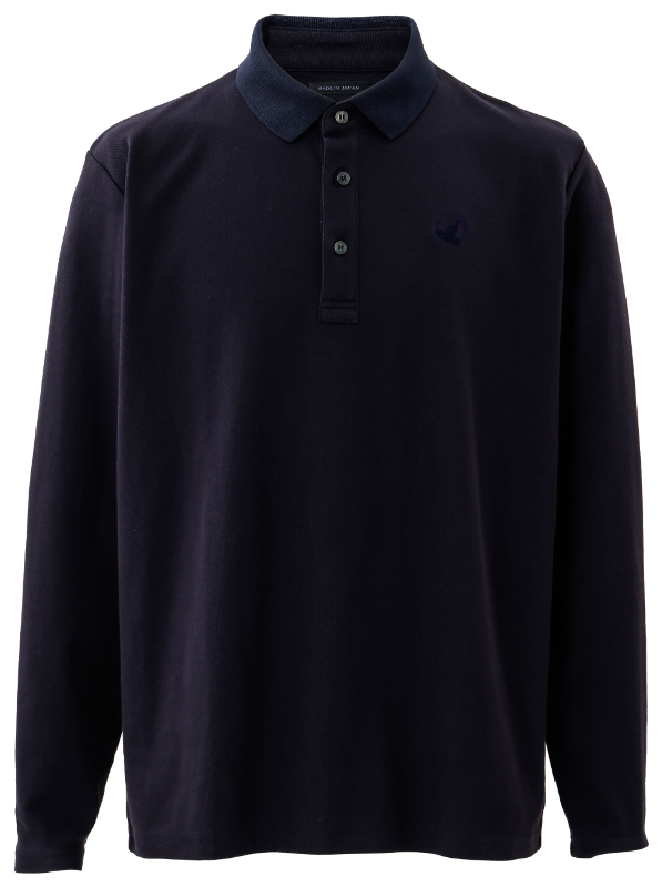 〈PREMIUM LINE〉では、日本製ならではの縫製技術と独自素材を活かしたベーシックウエアをそろえた。たとえば、透けにくく毛羽立ちにくい東洋紡せんい(株)の複合紡績糸マナード🄬を使用した長袖ポロシャツ「551-317110」(25,300円・税込)は、吸汗速乾性と耐摩耗性を備え、快適な着心地を実現。