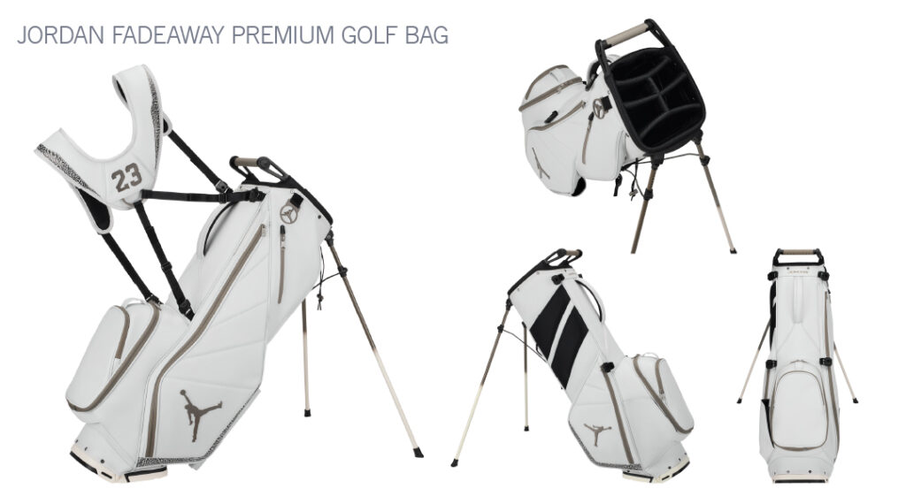 JORDAN Fadeaway Premium Golf Bag:ジョーダンのゴルフへの情熱を反映し、革新性と細部へのこだわりを兼ね備えたモデル。競技の歴史が持つ伝統と、大胆で新鮮なデザインが融合している。