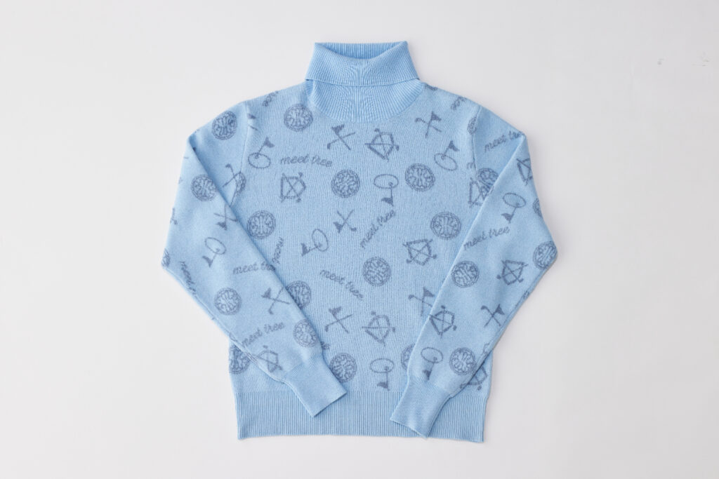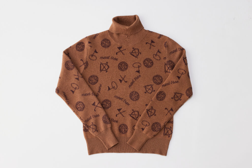 なめらかな肌触りが特徴のタートルネックニット。ブランドロゴをモチーフにしたジャカード柄が、シンプルな中に上品なアクセントを。