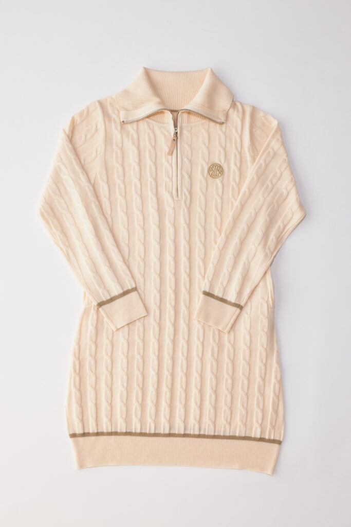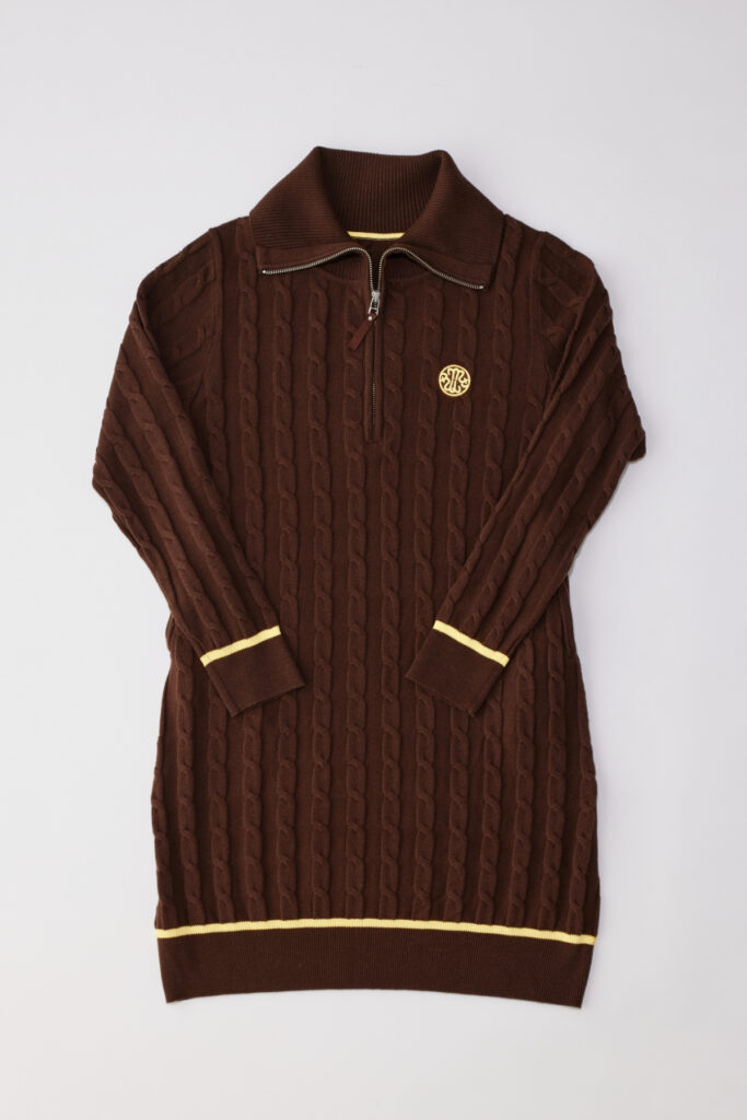 ウール混素材を使用した、あたたかみのあるケーブル編みのニットワンピース。