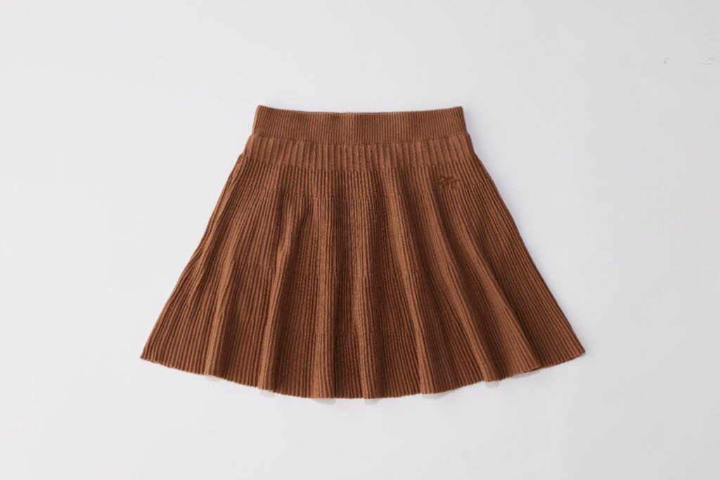 凹凸感のあるタック編みが表情を生み出すフレアスカート。揺れ感のあるシルエットで、女性らしい華やかさを演出する。
