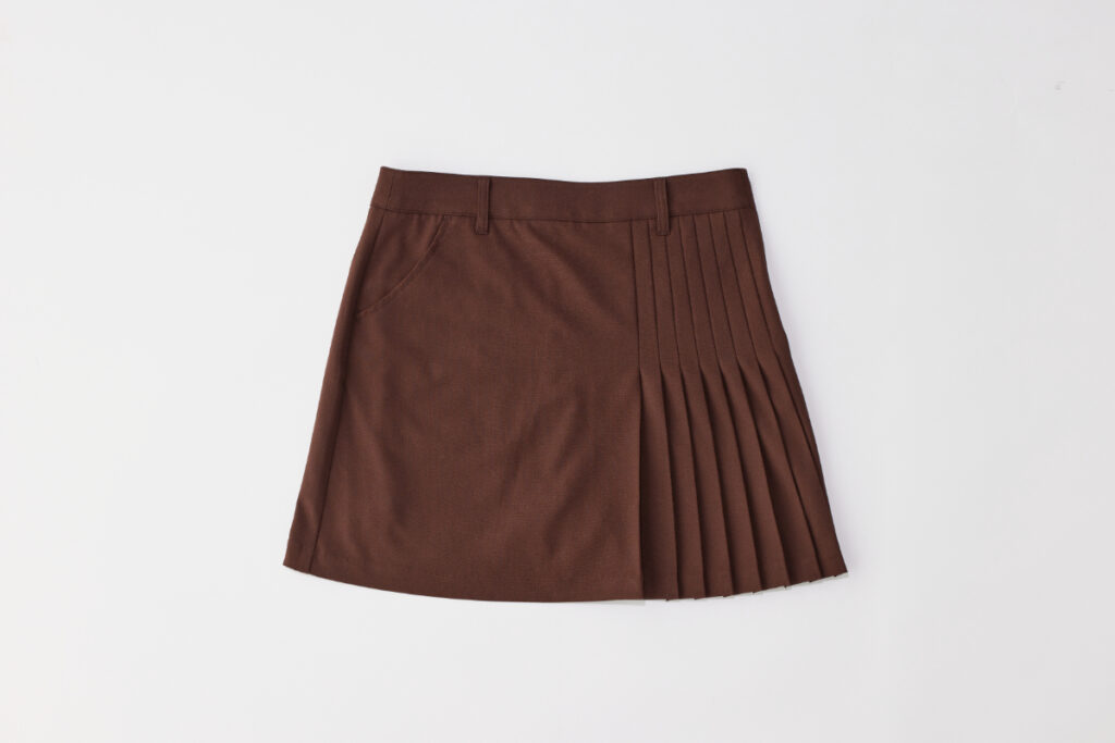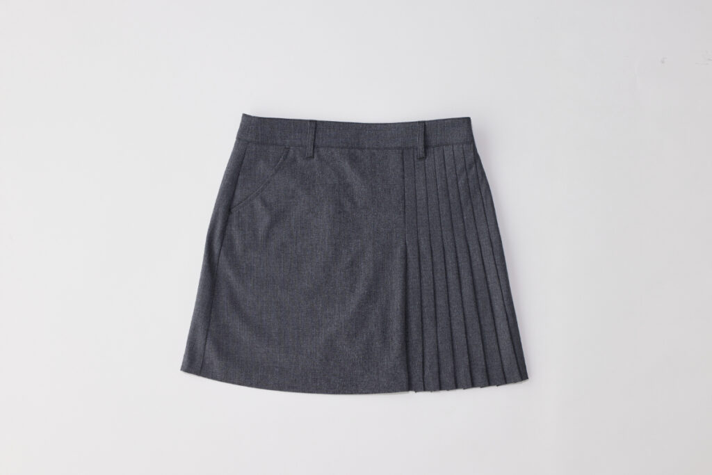 アシンメトリーに入ったプリーツが控えめな揺れ感を生み出し、動きに合わせて上品に広がるシルエットが魅力。