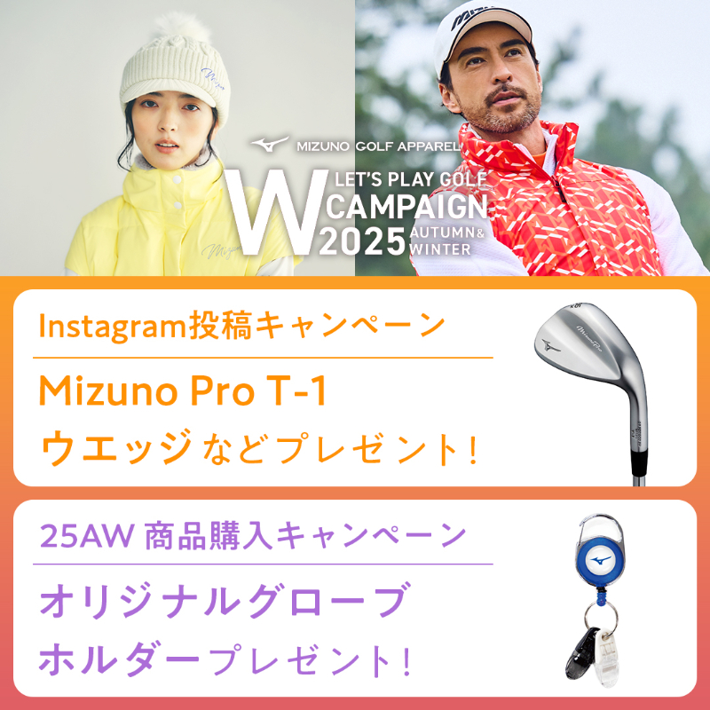 まず、Instagram投稿キャンペーンは10月17日(金)から2026年1月31日(土)まで実施。「ミズノゴルフ 25AW シーズン」のアパレルを着用した写真を、ハッシュタグ「#ミズノゴルフ」を付けて投稿し、公式アカウント(@mizunogolf_japan)をメンションすれば応募完了となる。抽選で「Mizuno Pro T-1 ウエッジ」や「NEXLITE ENERZY BOA」などが当たるチャンスも。