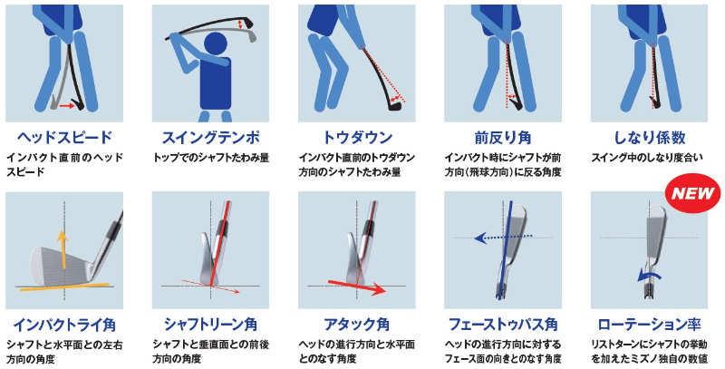 - 新たに“ローテーション率”を加え、合計10要素でスイングタイプを診断することで、より個人に合ったセット提案を可能にする。
