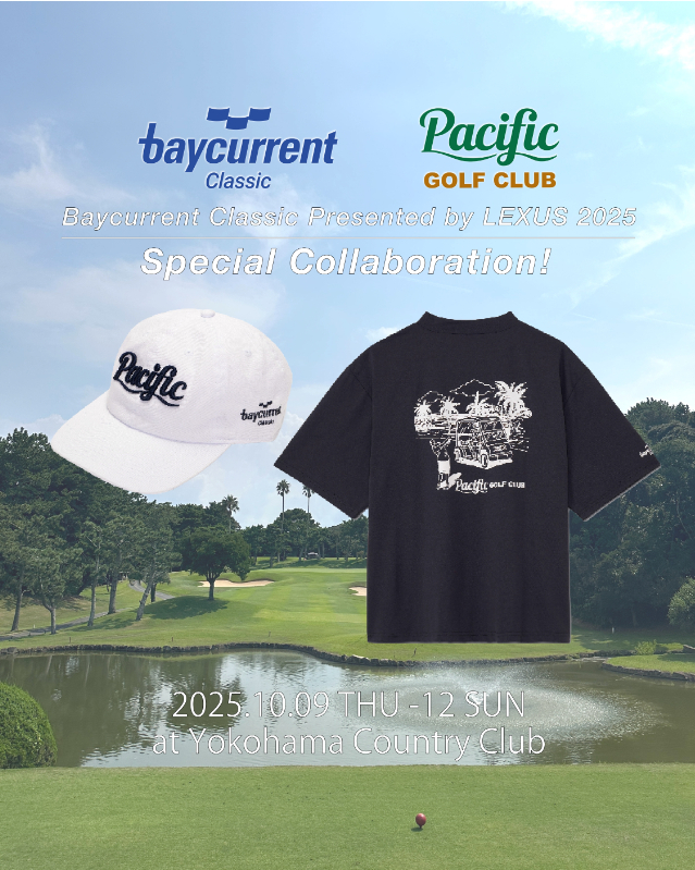 ゴルフブランド〈Pacific GOLF CLUB(パシフィック ゴルフ クラブ)〉が、「Baycurrent Classic Presented by LEXUS 2025」とのオフィシャルコラボレーションアイテムを発表した。大会は本日10月12日(日)まで横浜カントリークラブ(神奈川県横浜市)で開催され、会場およびファナティクス・ジャパン公式ECサイトにて、限定アイテムが販売される。
