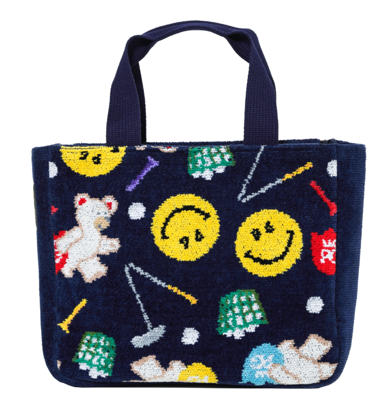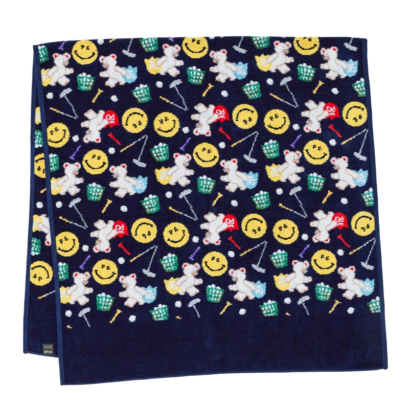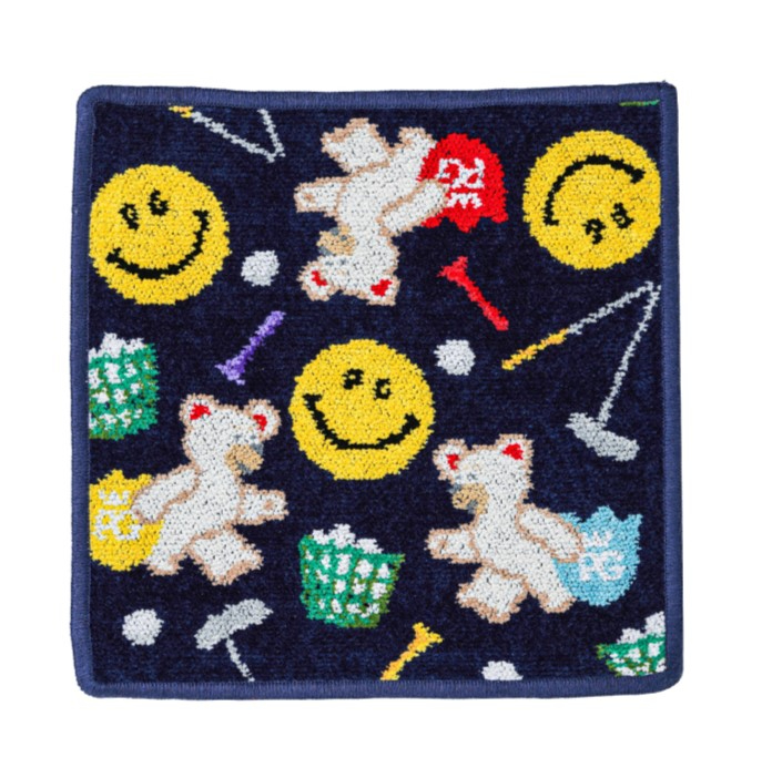 本コレクションでは、フェイラーを象徴する“シュニール織”を採用したハンカチ、カートバッグ、ボールポーチ、バスタオルの全4アイテムを展開。パーリーゲイツの人気モチーフ“PGニコちゃん”と、フェイラーの公式キャラクター「リーベくん」がコラボレーションし、折れたパターを持つなどの個性的で遊び心のあるデザインが目を惹く。