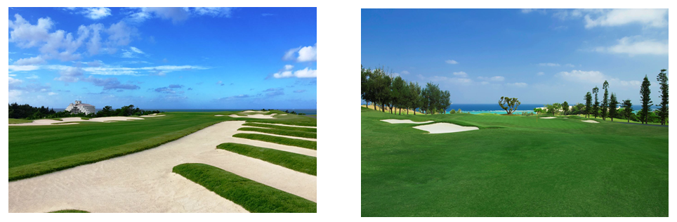 ホテルが併設される「PGMゴルフリゾート沖縄」は、眼下にはターコイズブルーに輝く東シナ海、はるか本部半島や伊江島を見渡せる壮大な景観が広がる。本コースは2017年に青木功プロがコースを改造監修して以来、さらに戦略性が高まったチャンピオンコースとなっている。