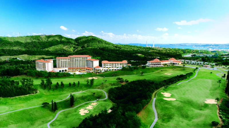 併設される「PGMゴルフリゾート沖縄」は、ターコイズブルーの東シナ海を望む27ホールのチャンピオンコース。青木功プロ監修による戦略的なレイアウトで、「HEIWA・PGM CHAMPIONSHIP」などのトーナメント開催実績もある。現在は「GRAND PGM」ブランドとして運営中だ。