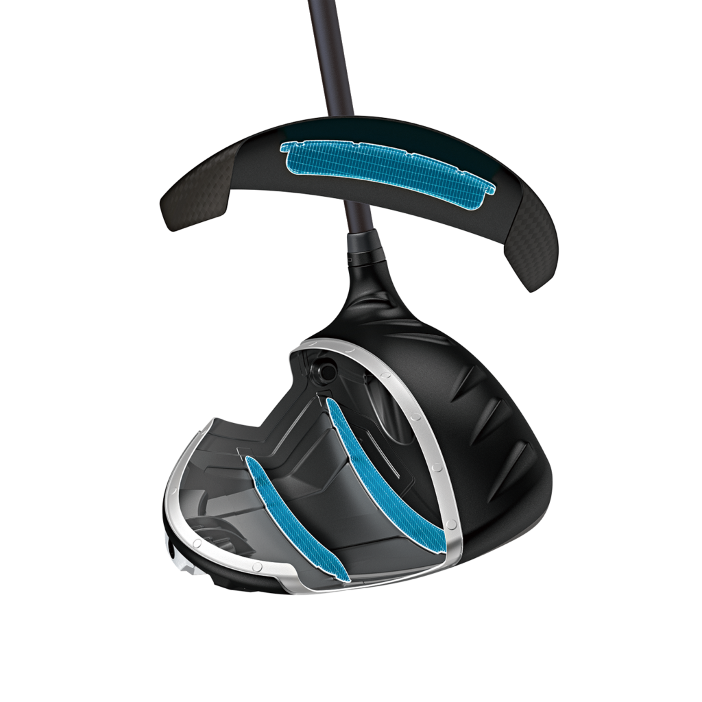 前作では、インパクト時の振動によりクラウンのカーボンが大きくたわみ、高音が発生していたという。今作はナイロン系リブを接着して振動を抑制し、たわみと高音を低減。打感の向上を狙った。クラウンのカーボンは8層から7層へ変更し、重量を大きく変えずにリブを搭載している。