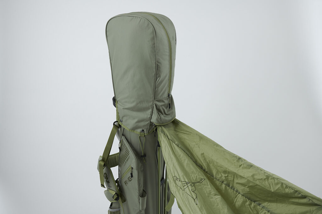 さらに、フードに内蔵された専用カバーにより、移動時や保管時におけるキャディバッグ本体への汚れを軽減する。同シリーズのクラブケースには、電車や徒歩での移動時にもクラブが周囲に当たりにくいリュック型を採用した。