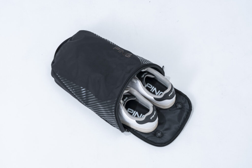 - 洗練されたデザインの連動アクセサリーも展開。ボールケースやリュック型クラブケースをはじめ、普段使いにも馴染むラウンドトートやポーチなど、トータルコーディネートが楽しめるラインアップである。