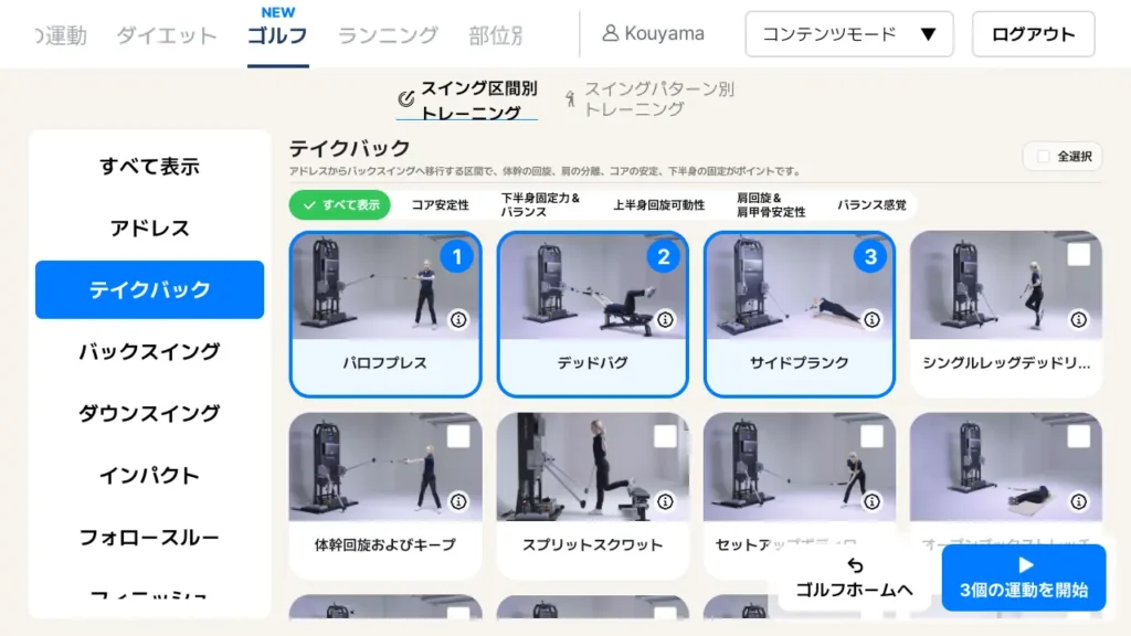 ゴルフ動作を再現する5つのAIトレーニングモード