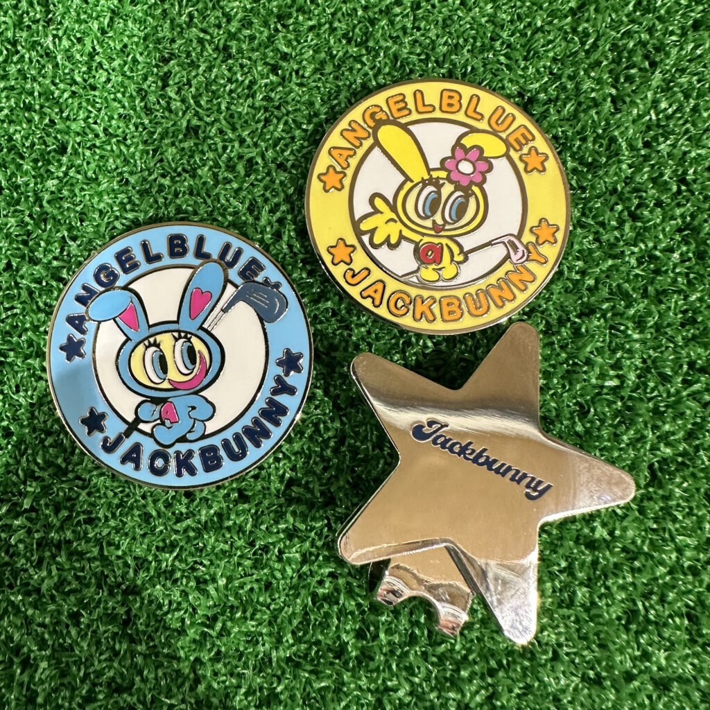 ポップでキャッチーなゴルフウエアが数多くの商品を取り扱っているので「たくさん説明を聞くぞ!」と密かに意気込んでいたのですが、プレスに入った瞬間「ANGEL BLUE(エンジェルブルー)」のコラボアイテムを見つけて、即決してしまうくらいに、お気に入りの一品(!?)が見つかりました。