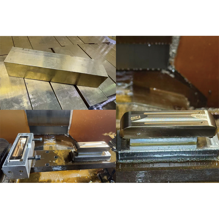 「真鍮インゴット完全削り出し」とは、真鍮(しんちゅう)の大きな塊(インゴット)から、コンピューター制御の機械(CNC)を使ってヘッド全体を一つひとつ削り出す製法。