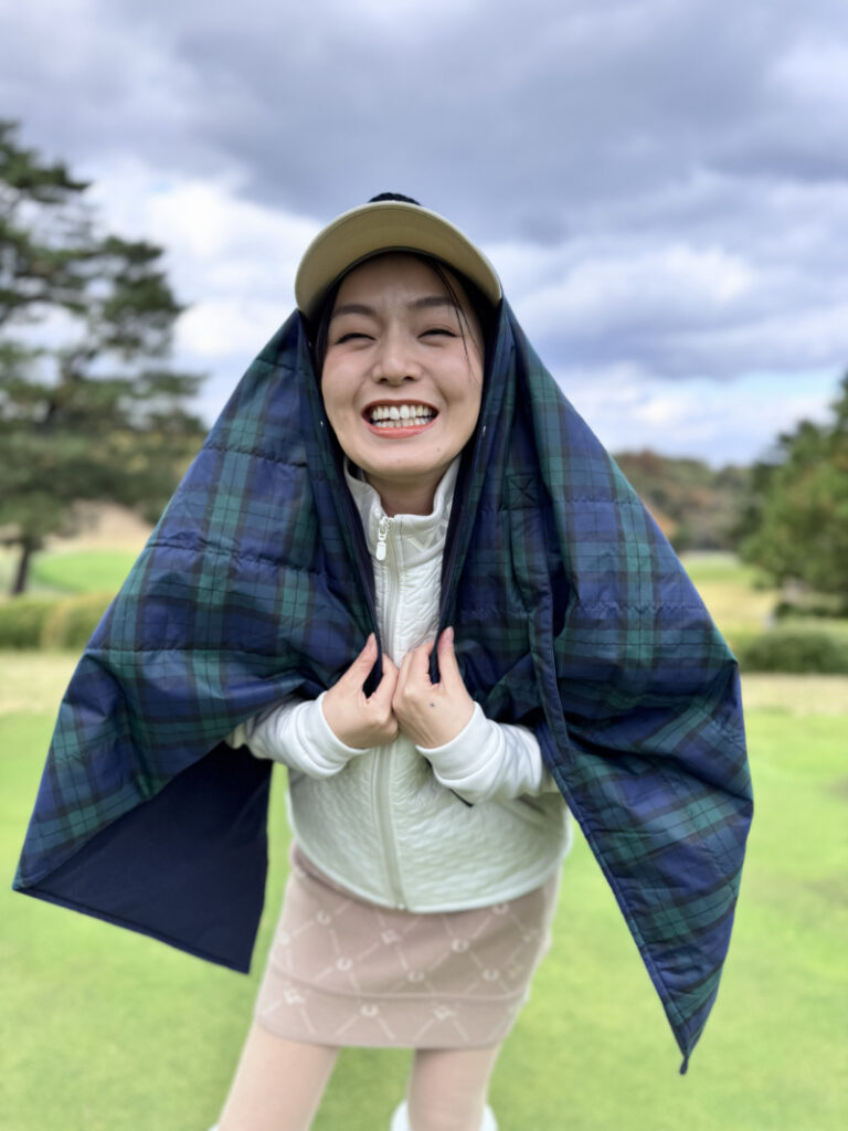 お尻から体温が全部奪われてしまう程、カートのシートって冷えていますよね。初めての冬ゴルフで準備が足りていなかった私は、座った瞬間、あれよあれよとガタガタ震え始めました。するとキャディーさんがシートにタオルを敷いて「これで大丈夫よ」と優しい笑顔…。お尻は秒で温まるし、神対応過ぎて本当に感謝しかない!!!このことをきっかけに夏凪はゴルフショップへ猛ダッシュしブランケットを購入したのでした。