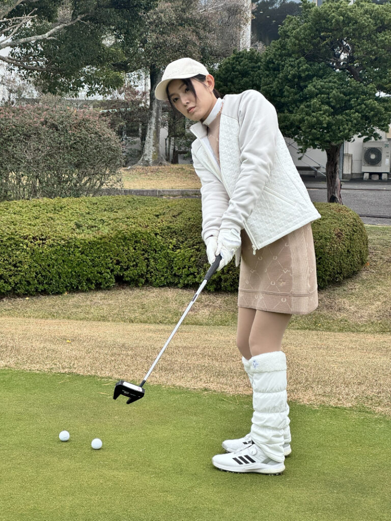 『プライベートの寒さ対策にもちゃっかりゴルフウェアのインナーを着ている夏凪。「マネさん、めっちゃ温かいし動きやすくていいですよ!」とギラギラした瞳で若干早口口調にて推しポイントを喋ってくる様子は、某通販番組の人のように見えます。(マネージャー一口メモ)』