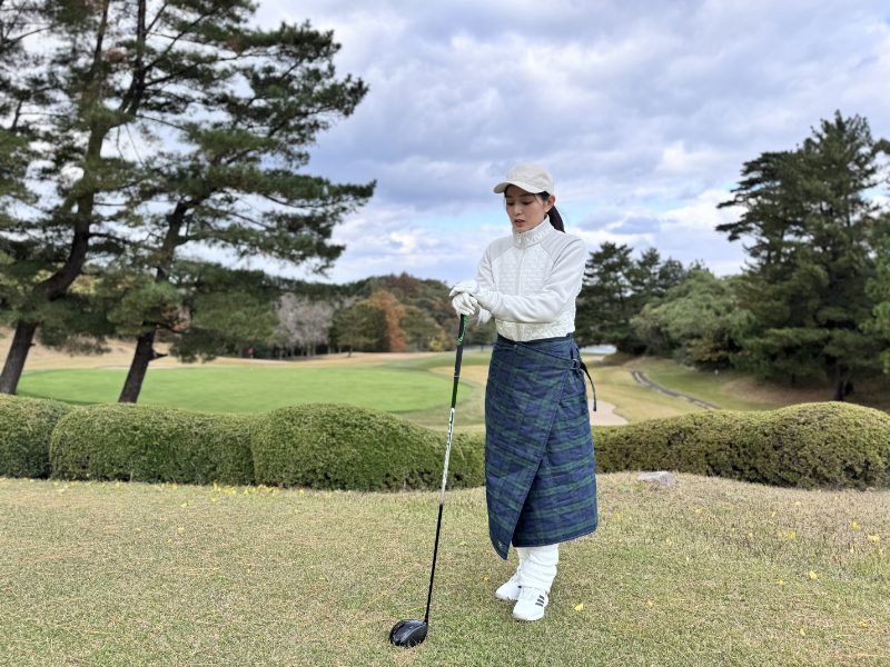 ということで、私は冬ゴルフでブランケットを常備!待ち時間に足元を温めるだけで、全然違うんです。しかも、最近のゴルフ用のブランケットは機能も発展していて、巻きスカート風やポンチョ風と変幻自在。パターのライン読みやティーショットの待ち時間など状況に合わせて使い方を変えています。備えあれば患いなし(゚д゚)(。_。)ウン